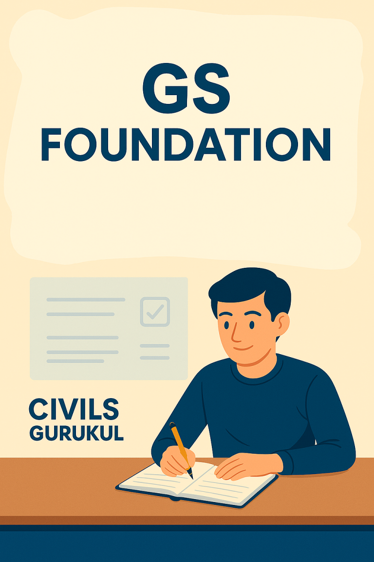 Our *General Studies Foundation Course* for the UPSC IAS Examination offers complete coverage for both *Prelims and Mains. Designed by expert faculty, the course is available in **Offline* and *Live Online* modes, ensuring flexibility for every aspirant. Students receive comprehensive study material, live interactive classes, recorded sessions for revision, and access to personal mentorship. The program includes a rigorous *Test Series* for Prelims and Mains, with detailed feedback to sharpen writing skills and improve exam strategy. Join us to build a strong foundation, master the syllabus systematically, and stay exam-ready with structured guidance and continuous practice!